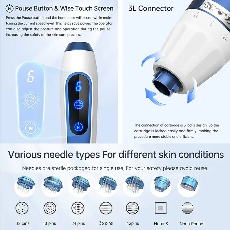 - Advanced Microneedling Technology: Equipped with ultra-fine needles that create micro-channels in the skin, stimulating natural healing and collagen production.
